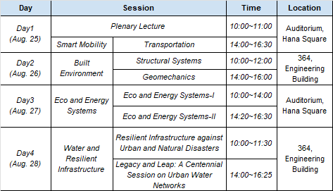 ■ 장 소 : 하나스퀘어 강당(25일, 27일) , 공학관 364호(26일, 28일) 및 온라인(Zoom)