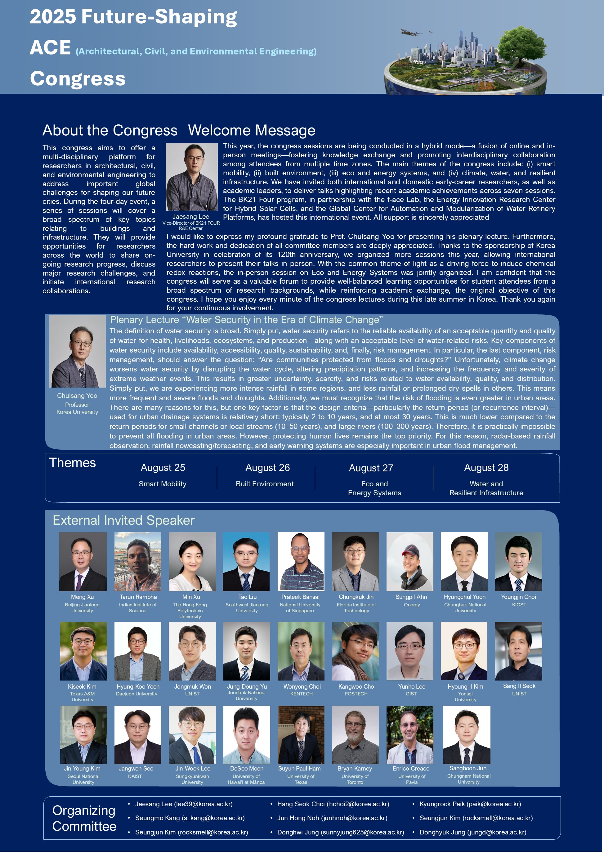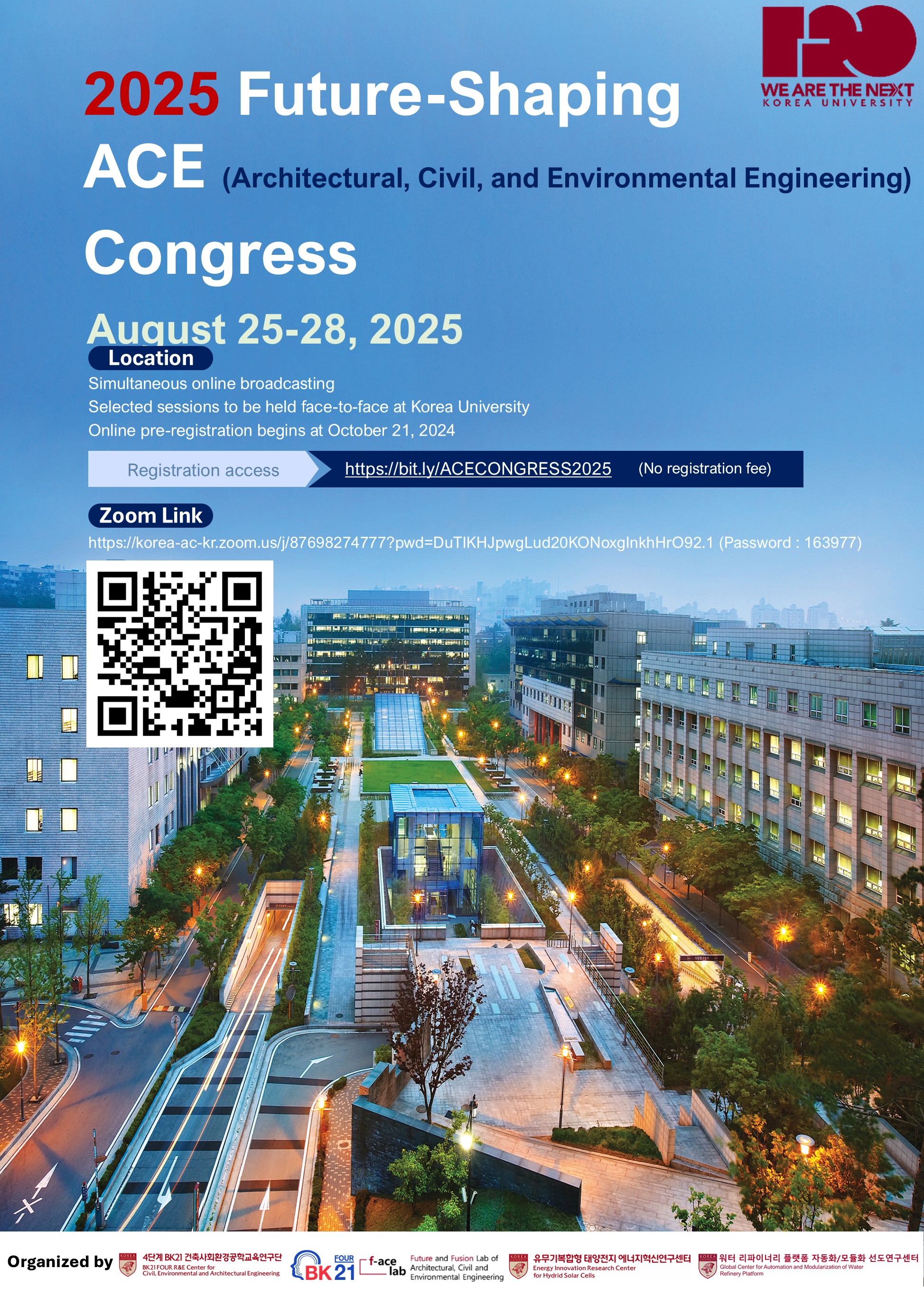 고려대학교 4단계 BK21 건축사회환경공학교육연구단에서는 개교 120주년을 맞이하여 「2025 Future-Shaping ACE Congress」 를 개최합니다.